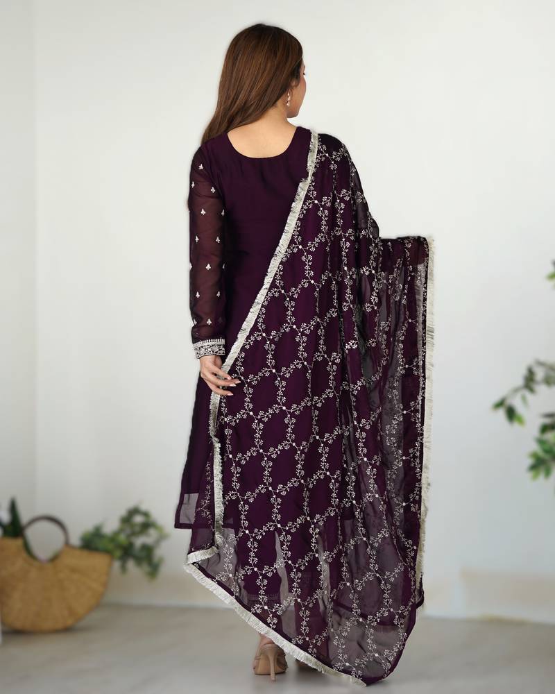 | • | Dupatta | : | Color- Wine / Fabric- Pure Silk Blend |