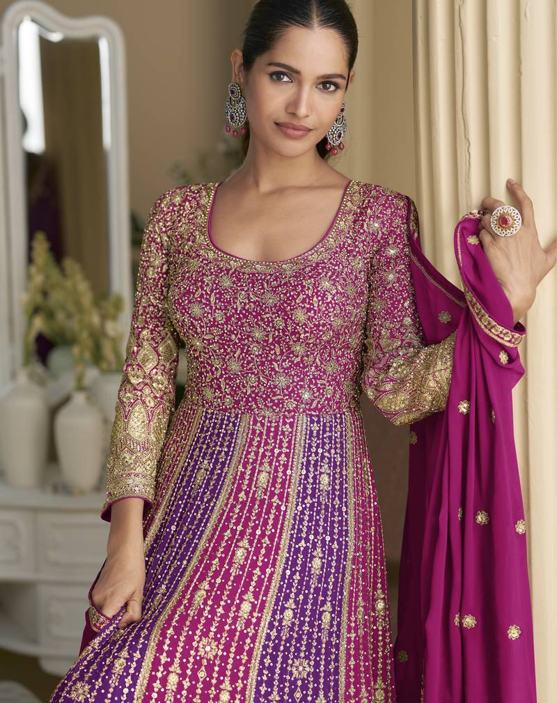 Women’s embroidered georgette anarkali with dupatta – elegant ethnic wear stitched