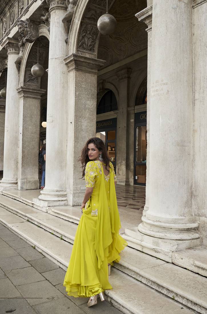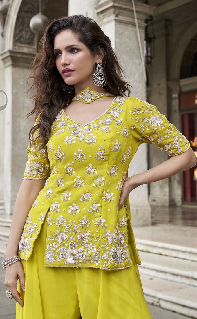 | Product Name | Yellow Organza Silk Embroidered Palazzo Suit Set | |