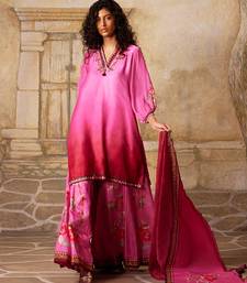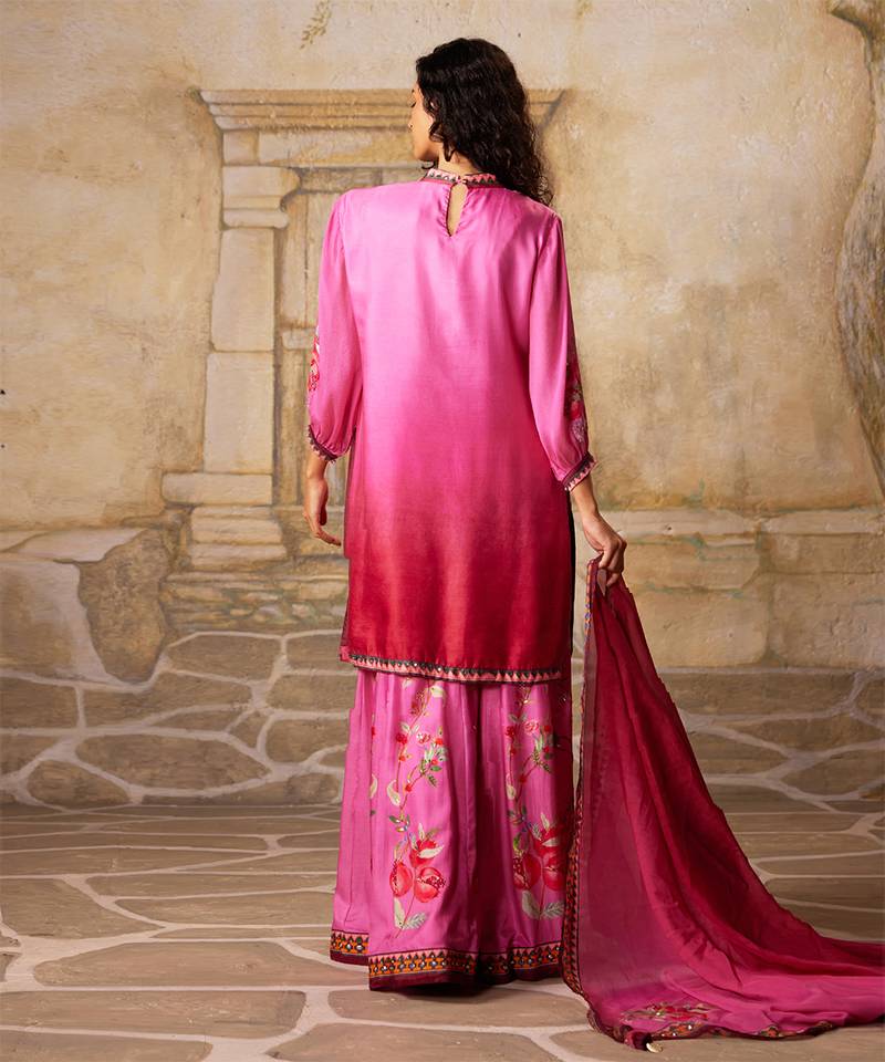 Pink embroidered satin sharara set