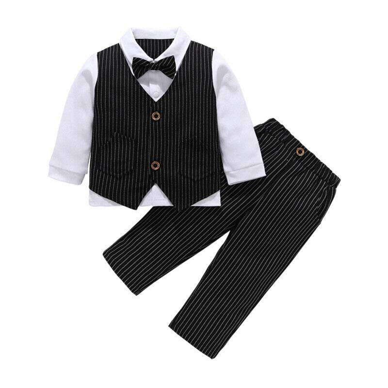 Baby boys party wear 3-piece suit set (shirt, waistcoat & pant with bow tie)