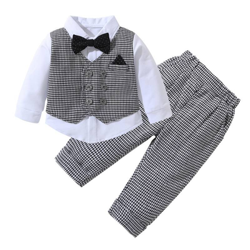 Baby boys party wear 3-piece suit set (shirt, waistcoat & pant with bow tie)