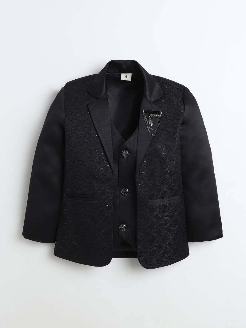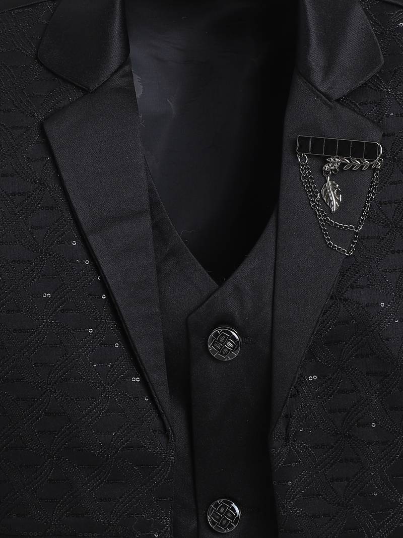 | Product Name | Boys Black Satin Modern Geometric Jacquard Woven 3 Piece Suit Set With Bow Tie | |