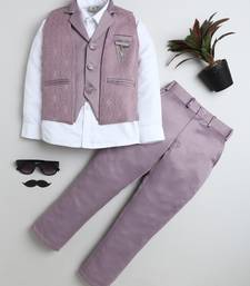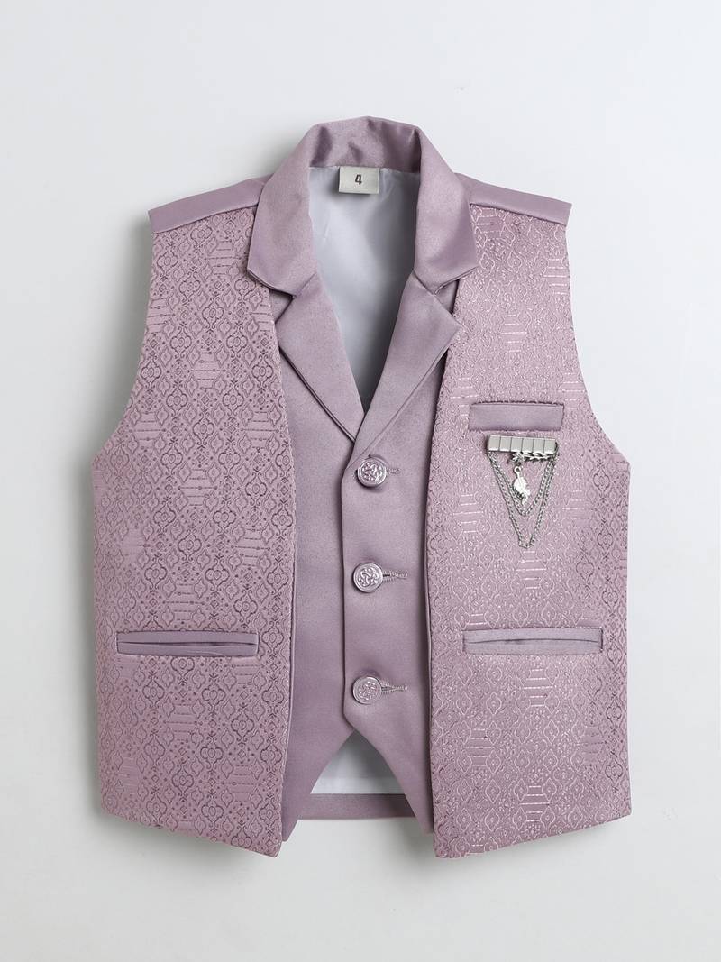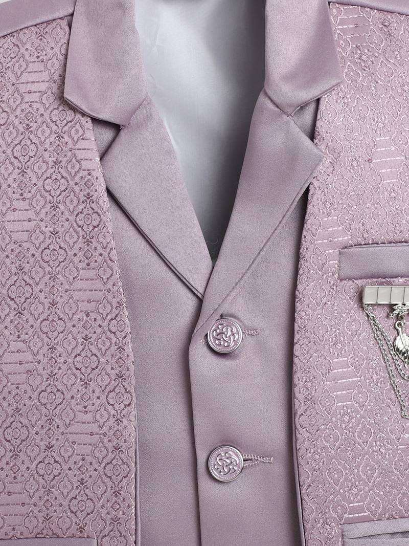 | Product Name | Boys Mauve Satin Geometric Jacquard Woven 3 Piece Party Suit Set | |