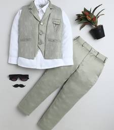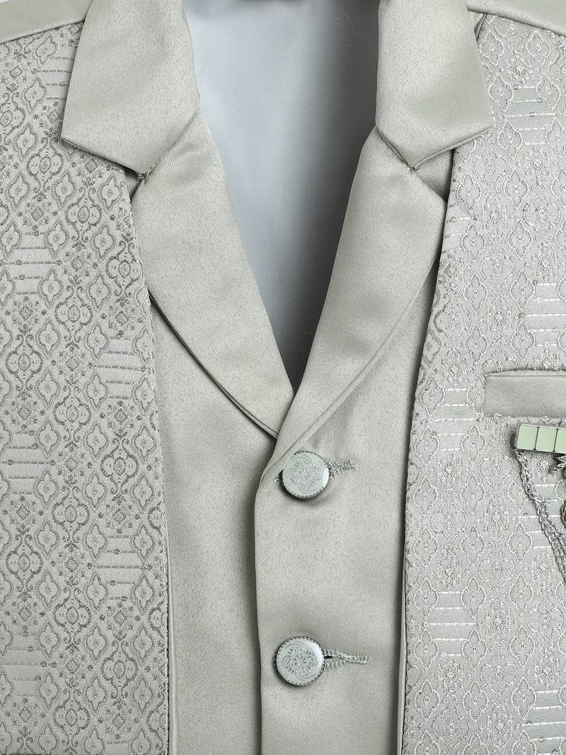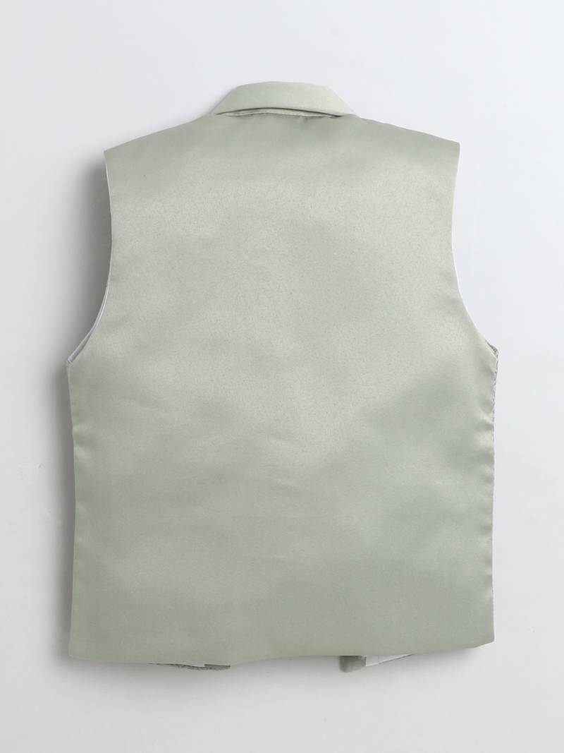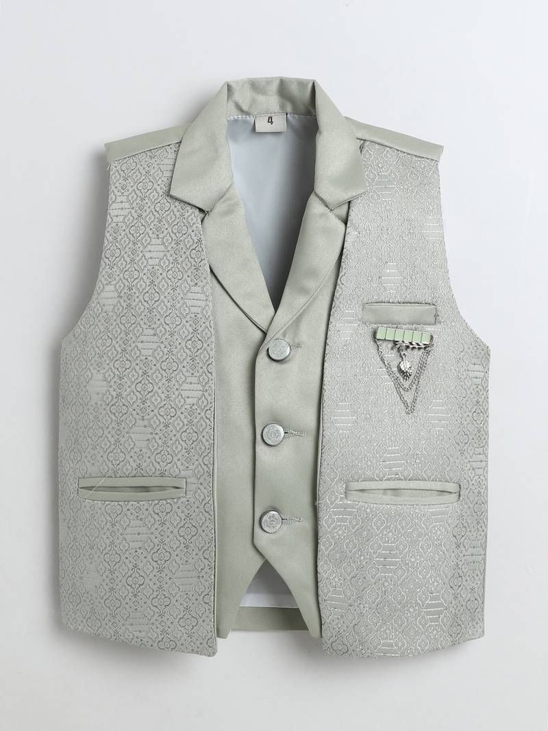 | Product Name | Boys Pista Green Satin Geometric Jacquard Woven 3 Piece Party Suit Set | |