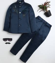 | Product Description | Step Up Your Little One’s Festive Style With This Bandhgala Suit Set. Crafted From Smooth Satin, The Bandhgala Blazer Features Intricate Peacock Inspired Sugar Bead Embellishments For A Striking, Elegant Look. The Tailored Fit And Refined Detailing Give The Outfit A Polished, Regal Appearance. Paired With Matching Trousers, It Creates A Complete And Sophisticated Ensemble. Lightweight And Comfortable, It Ensures Ease Of Wear During Special Occasions. Perfect For Weddings, Festivals, And Cultural Celebrations. |