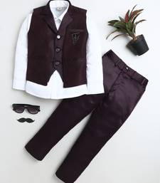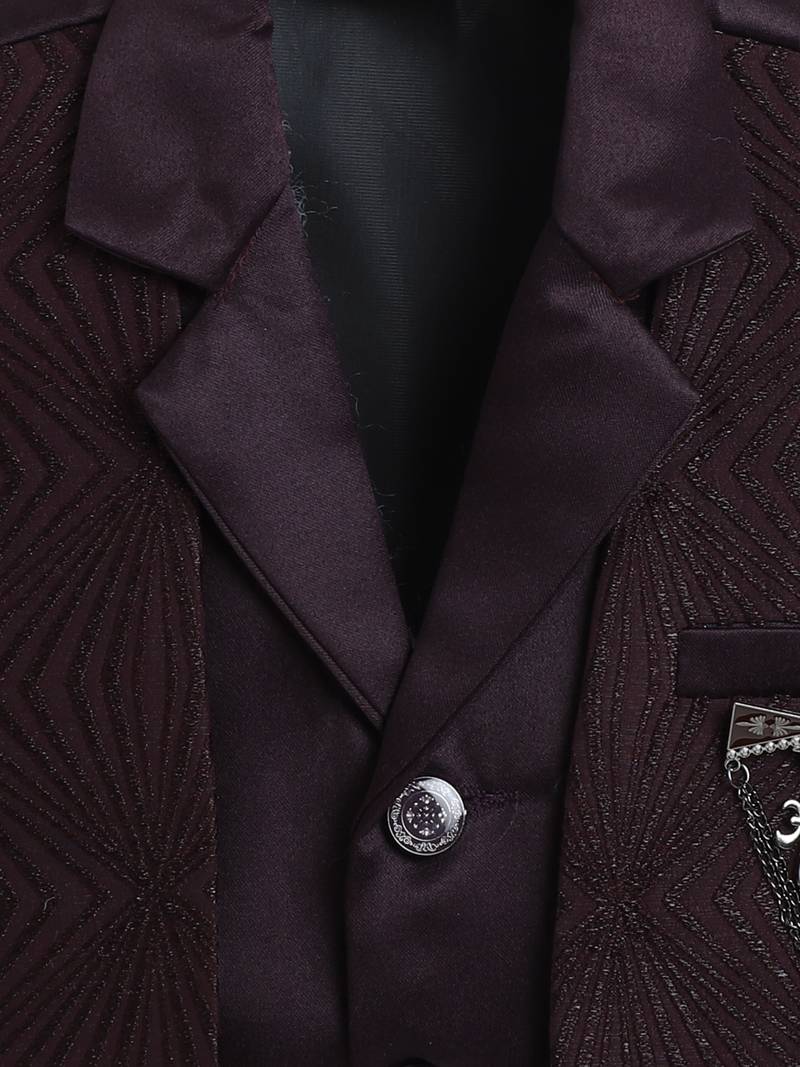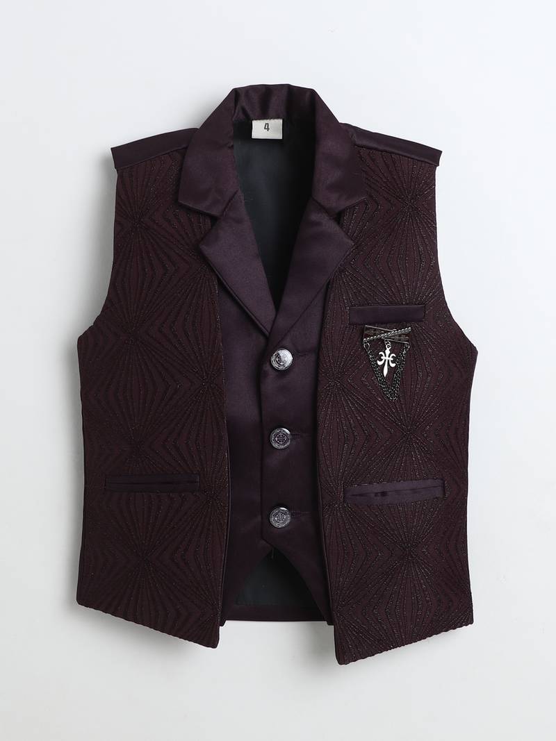 | Product Name | Boys Wine Satin Sunburst Jacquard Woven 3 Piece Party Suit Set | |