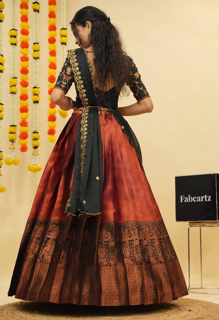 | Product Description | "Fabric: Lehenga Fabric : Lichi Silk Zari Work Choli Fabric: Taffeta Dupatta Fabric: Rangoli Silk Pattern: Lehenga: Solid With Woven Blouse: Embroidery Work Stitch Type Lehenga Is Semi Stitched Choli Is Unstitched Length : Lehenga Length 42 Inch (Semi Stitched) Lehenga Waist Size – Upto 40 Inch Lehenga Flair 3.6 M Blouse 1 M Dupatta 2.40 M Ready To Ship." |