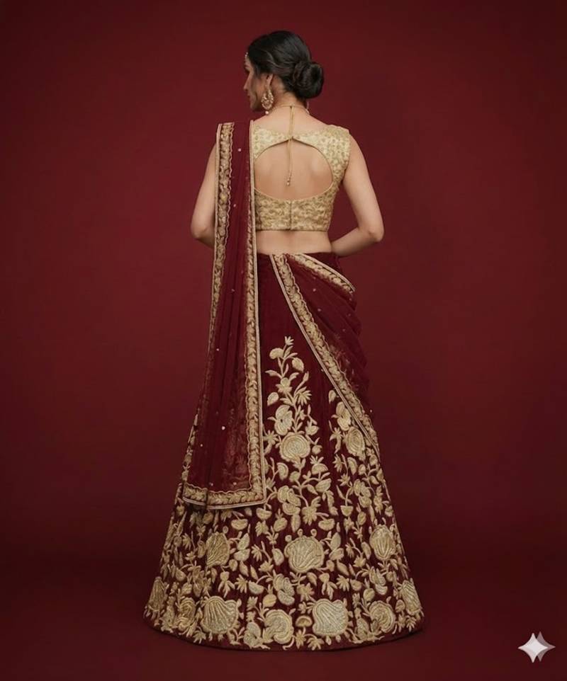 | Product Name | Maroon Zari Dori & Sequins Embroidered Velvet Festive Bridal Wedding & Party Wear Semi Stitched Lehenga Choli | |