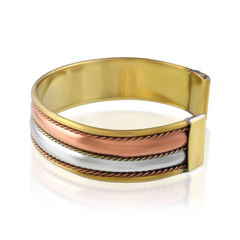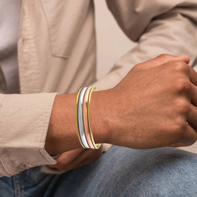 | Product Description | Elevate Your Style And Well Being With This Handcrafted Tri Metal Cuff Bracelet Kada, Designed For Both Men And Women. Made From Pure Copper, Stainless Steel, And Brass, This 17mm Broad Kada Blends Tradition With Modern Elegance. With A Net Weight Of 16 Grams And An Open Ended Adjustable Design, It Ensures A Comfortable Fit For All Wrist Sizes. Beyond Its Striking Appearance, This Kada Is Rooted In Vedic Traditions And Holistic Wellness. Each Metal Carries Unique Health And Astrological Benefits, Believed To Balance Energies, Improve Circulation, And Attract Positivity. Whether Worn For Fashion, Faith, Or Healing, This Kada Is A Timeless Companion For Your Journey. |