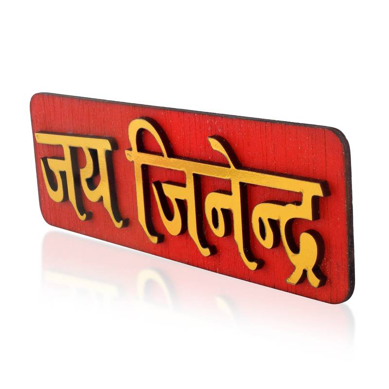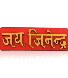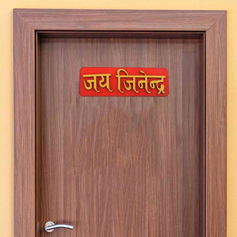 Teak Wood Golden Jain Spiritual Jai Jindendra Main Gate Welcome Plate Homedecor
