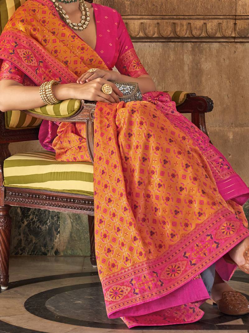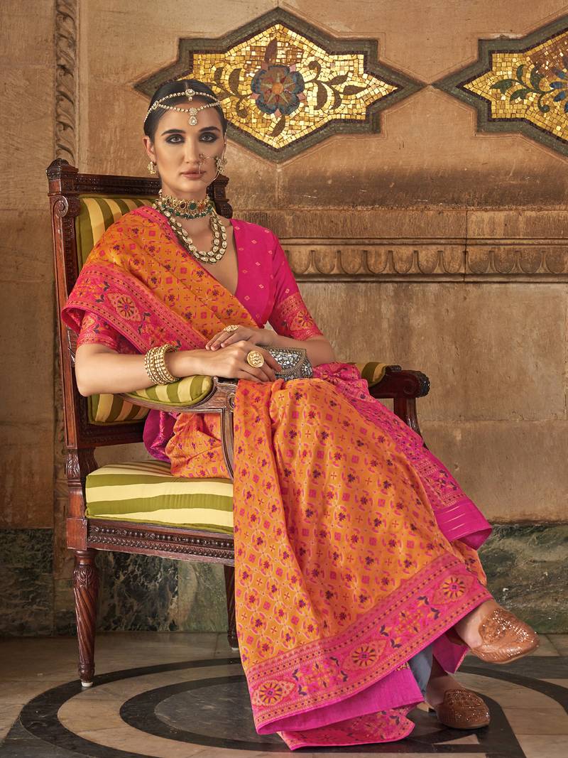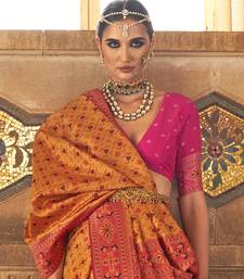 Elora soft silk jacquard faux banarasi weaving saree for womenorange