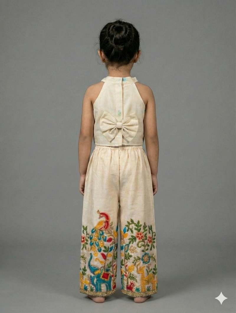 Off white embroidered halter top palazzo co-ord set for kids