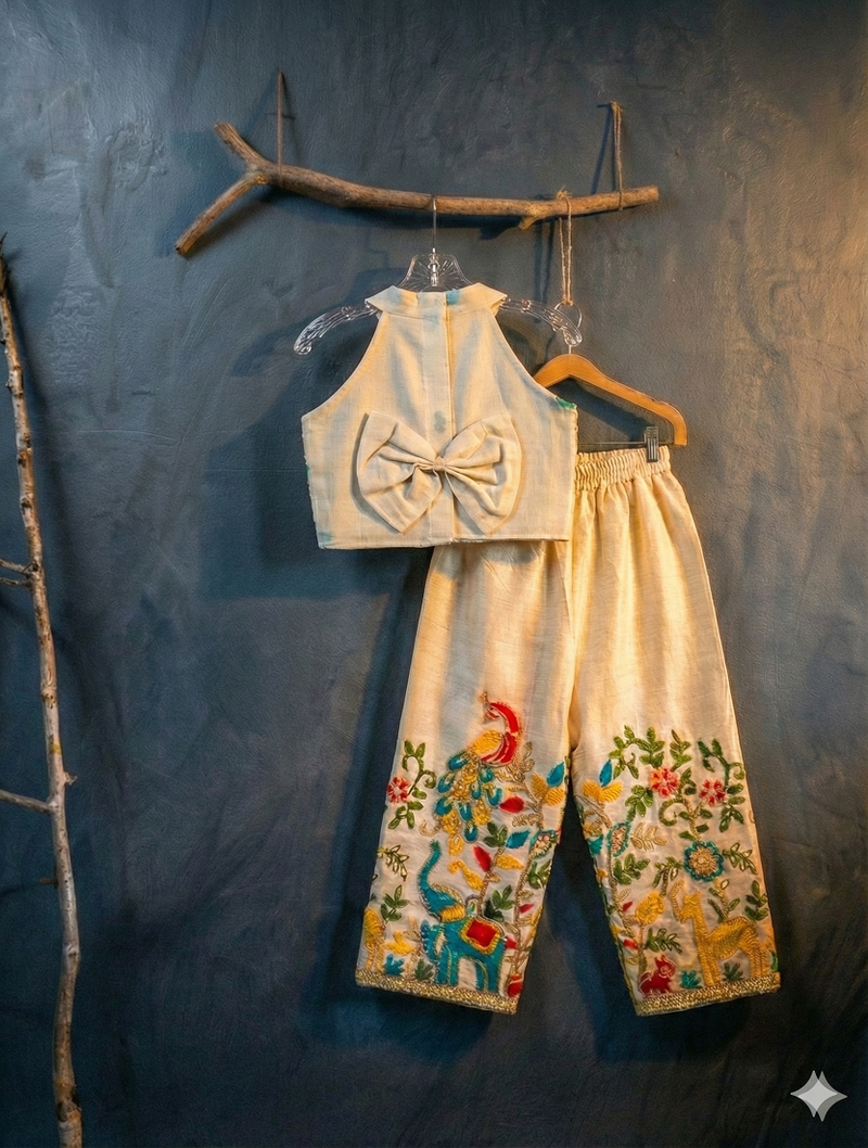 | Product Name | Off White Embroidered Halter Top Palazzo Co Ord Set For Kids | |