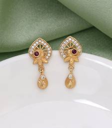 | Product Description | Earring Length: 2.70 Cm X Width: 1.20 Cm | Metal: Alloy With Good Quality Gold Plated | Color: Gold | Stone: Micro American Diamond | Gross Weight: 13.00 Grams | Package Content: 1 Pair Of Earring | Back Finding: Post With Friction Back X Earring Style: Drop |