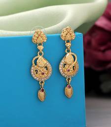 | Product Description | Earring Length: 4.40 Cm X Width: 1.30 Cm | Metal: Alloy With Good Quality Gold Plated | Color: Gold | Stone: Micro American Diamond | Gross Weight: 18.00 Grams | Package Content: 1 Pair Of Earring | Back Finding: Post With Friction Back X Earring Style: Drop |