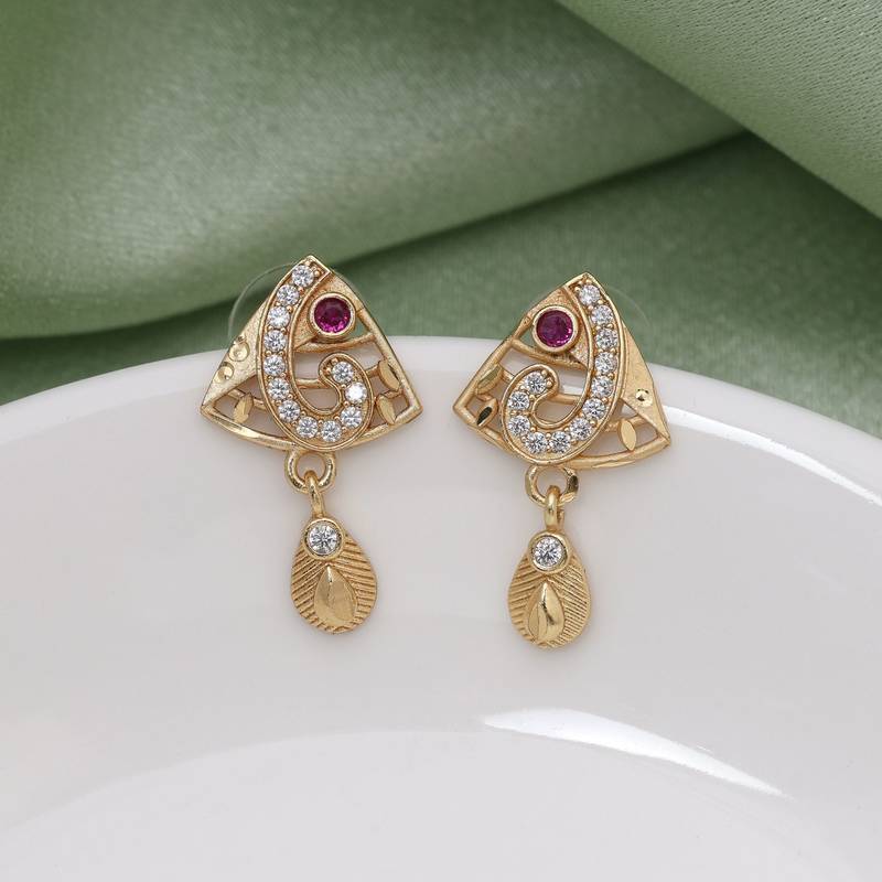 | Product Description | Earring Length: 2.50 Cm X Width: 1.50 Cm | Metal: Alloy With Good Quality Gold Plated | Color: Gold | Stone: Micro American Diamond | Gross Weight: 13.00 Grams | Package Content: 1 Pair Of Earring | Back Finding: Post With Friction Back X Earring Style: Drop |
