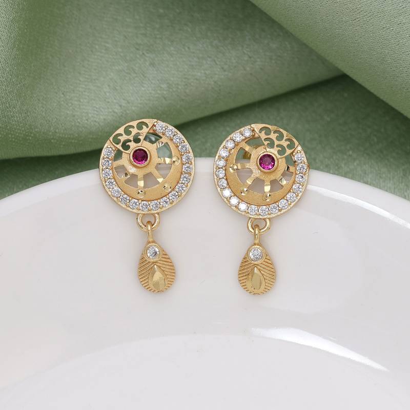 | Product Description | Earring Length: 2.50 Cm X Width: 1.50 Cm | Metal: Alloy With Good Quality Gold Plated | Color: Gold | Stone: Micro American Diamond | Gross Weight: 13.00 Grams | Package Content: 1 Pair Of Earring | Back Finding: Post With Friction Back X Earring Style: Drop |