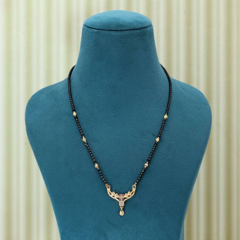 | Product Description | Chain Length: 52.00 Cm | Pendant Length: 3.00 Cm X Width: 3.00 Cm | Metal: Alloy With Good Quality Gold Plated | Color: Gold | Stone: Micro Ad | Gross Weight: 26.00 Grams | Package Content: 1 Piece Of Mangalsutra |