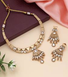 | Product Description | Adjustable Rope | Necklace Length: 20.00 Cm X Width: 1.10 Cm | Earring Length: 5.20 Cm X Width: 2.20 Cm | Metal: Alloy With Good Quality Matte Gold Plated | Color: Gold | Stone: Kundan | Gross Weight: 61.00 Grams | Package Content: 1 Piece Of Necklace/1 Pair Of Earrings | Back Finding: Post With Friction Back X Earring Style: Dangle |