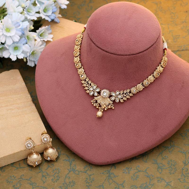 | Product Description | Adjustable Rope | Necklace Length: 20.00 Cm X Width: 1.50 Cm | Earring Length: 4.20 Cm X Width: 2.00 Cm | Metal: Alloy With Good Quality Matte Gold Plated | Color: Gold | Stone: Kundan & Beads | Gross Weight: 67.00 Grams | Package Content: 1 Piece Of Necklace/1 Pair Of Earrings | Back Finding: Post With Friction Back X Earring Style: Jhumka |