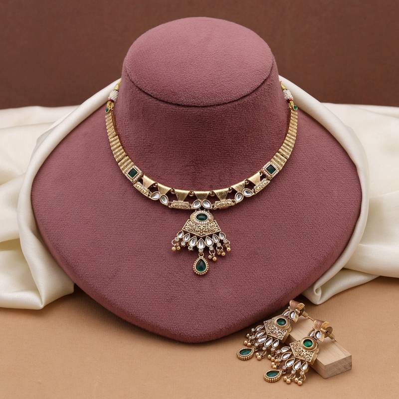 | Product Name | Green Color Matte Gold Necklace Set | |