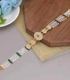 | Product Description | Matha Patti Length: 26.00 Cm X Width: 2.70 Cm | Metal: Alloy With Good Quality Gold Plated | Color: Green & White | Stone: Rhinestone & Beads | Gross Weight: 16.00 Grams | Package Content: 1 Piece Of Kundan Matha |