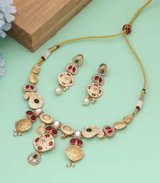 | Product Description | Adjustable Rope | Necklace Length: 18.00 Cm X Width: 4.00 Cm | Earring Length: 5.70 Cm X Width: 2.00 Cm | Metal: Alloy With Good Quality Matte Gold Plated | Color: Multi | Stone: Kundan & Beads | Gross Weight: 51.00 Grams | Package Content: 1 Piece Of Necklace/ 1 Pair Of Earring | Back Finding: Post With Friction Back X Earring Style: Drop |