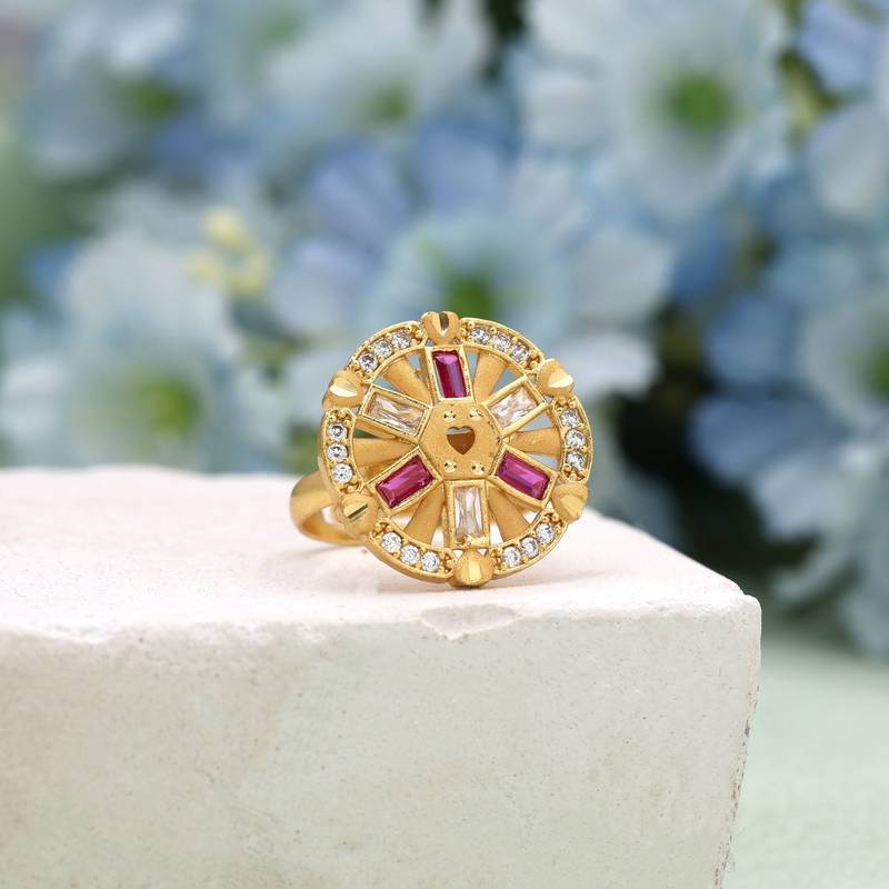 | Product Description | Ring Size: Adjustable | Metal: Alloy With Good Quality Gold Plated | Color: Rani | Stone: Rhinestone | Gross Weight: 130.00 Grams | Package Content: 12 Pieces Of Rings |
