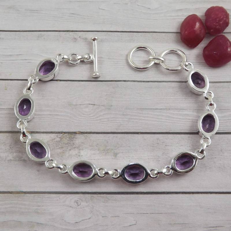 Eight amethyst stone silver bracelet | 925 sterling silver | handmade gemstone bracelet | statement jewelry for her