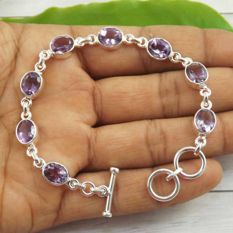 | Product Description | Features: Gemstones: Eight Natural Amethyst Stones Metal: 925 Sterling Silver Style: Multi Stone / Statement / Handmade Bracelet Finish: Polished, Artisan Crafted Nickel Free & Hypoallergenic Elegant, Versatile, And Perfect For Daily Wear Or Gifting |