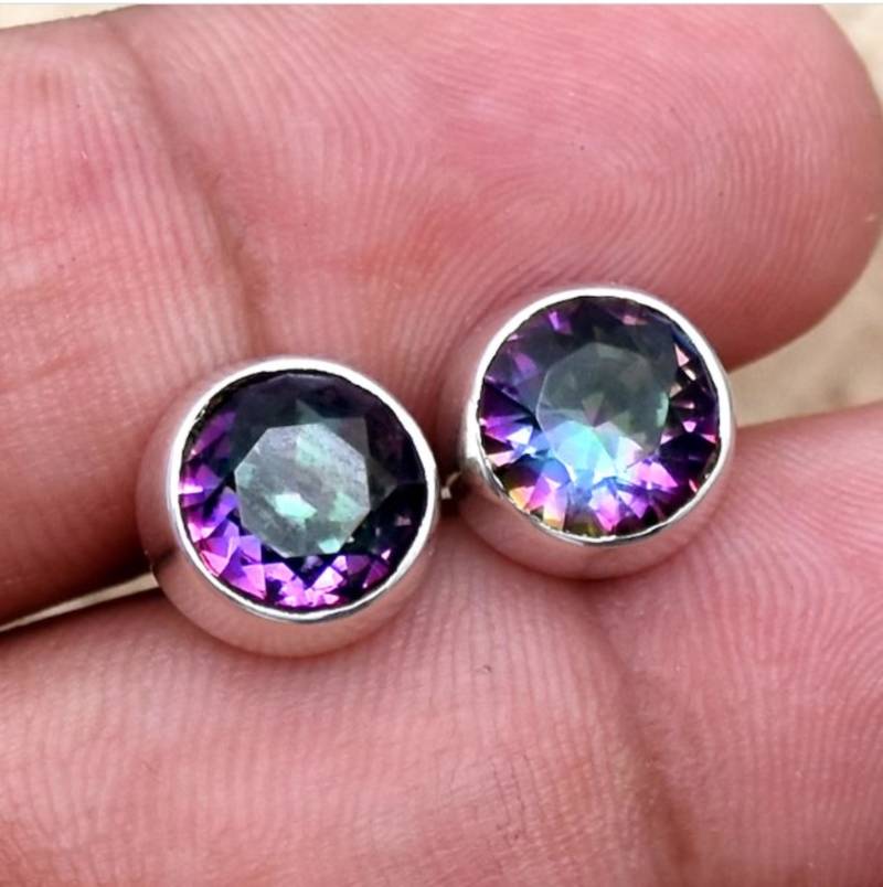 Genuine fire mystic topaz earrings | round diamond cut | 925 sterling silver