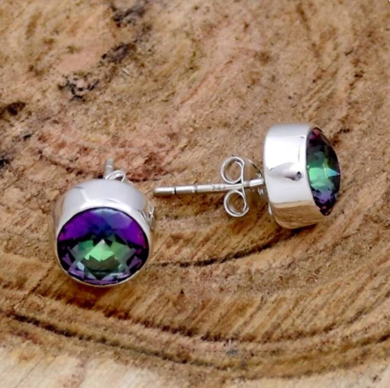 | Product Name | Genuine Fire Mystic Topaz Earrings | Round Diamond Cut | 925 Sterling Silver | |