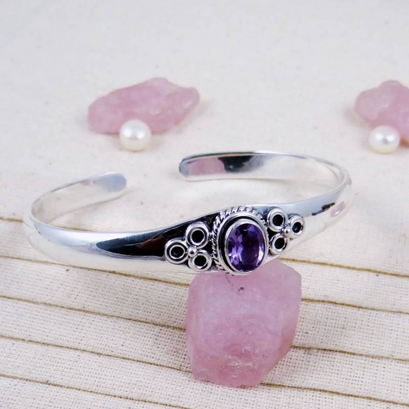 | Product Name | Handmade Amethyst Bangle | 925 Sterling Silver Open Cuff | Adjustable Gemstone Bracelet | Statement Jewelry For Her | |