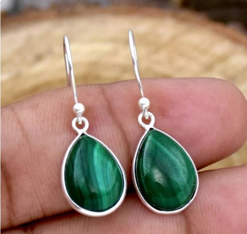 | Product Name | Handmade Malachite Drop Earrings | 925 Sterling Silver Gemstone Jewelry | |