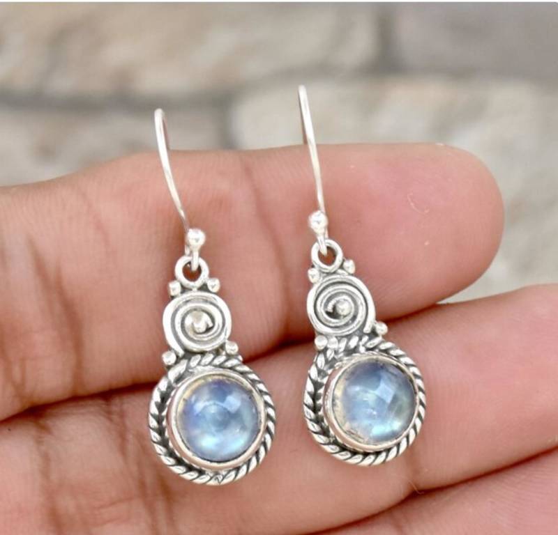Product Name Rainbow Moonstone Earrings | 925 Sterling Silver Handmade Dangle