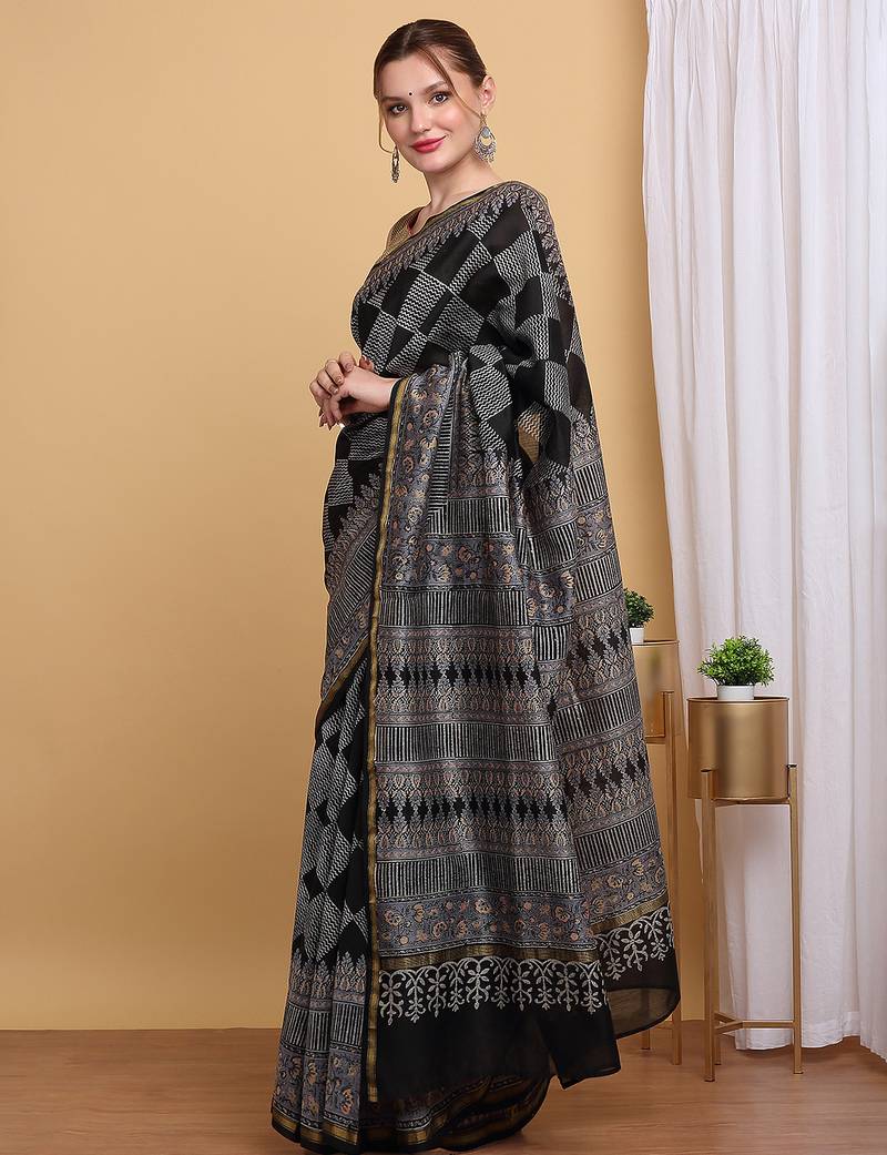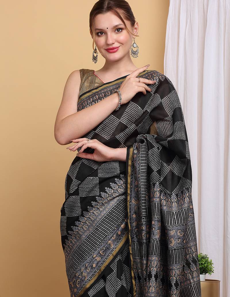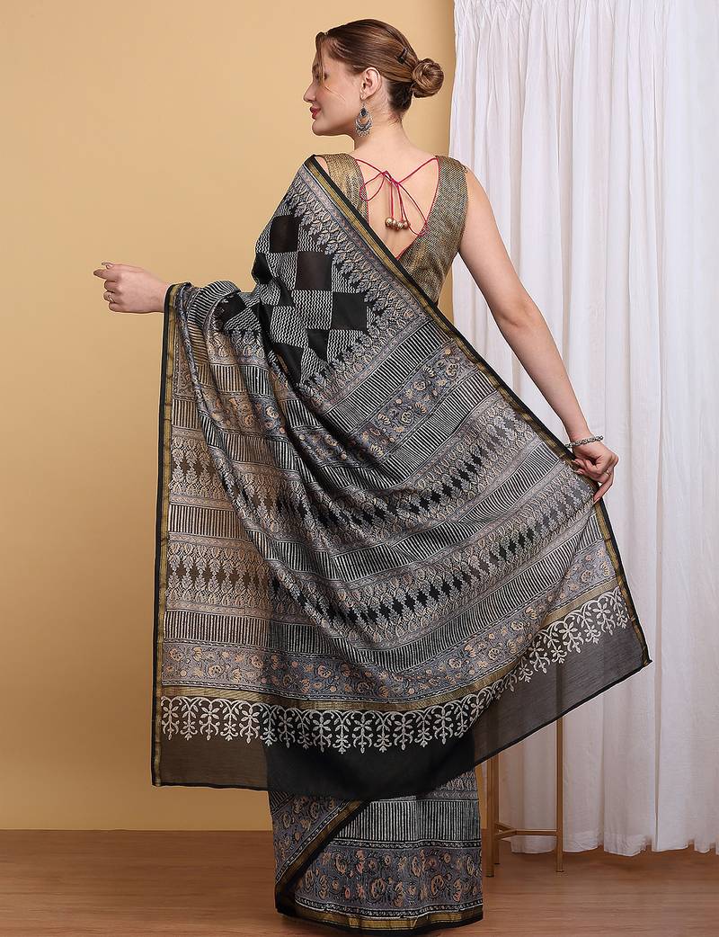 | Product Name | Black Chanderi Cotton Silk Block Print Saree | |