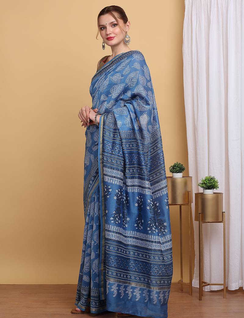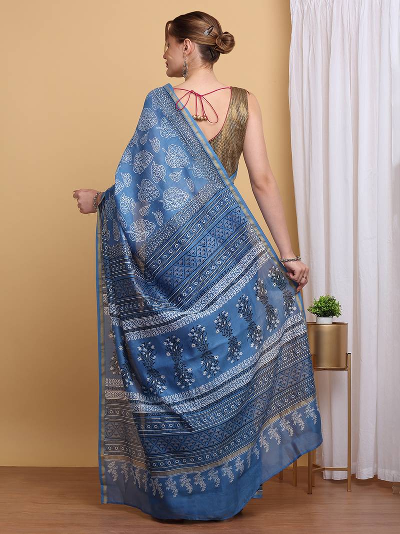 | Product Name | Blue Chanderi Cotton Silk Block Print Saree | |