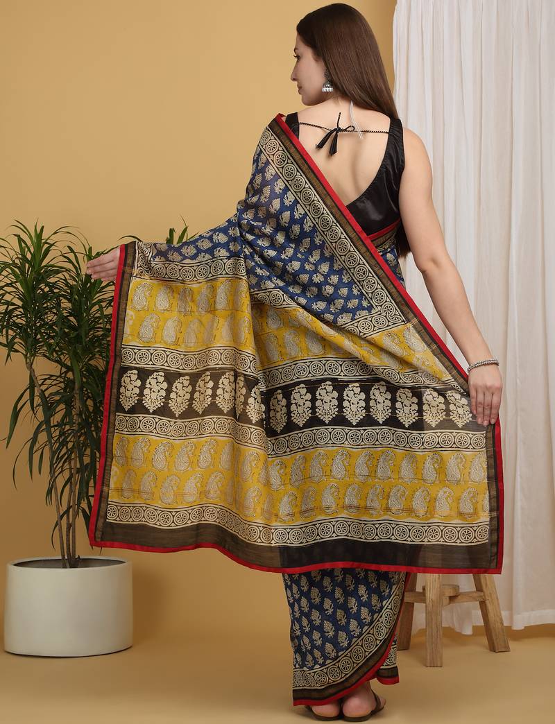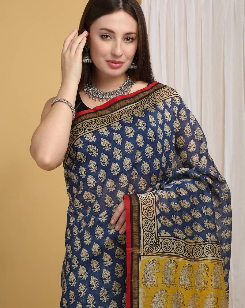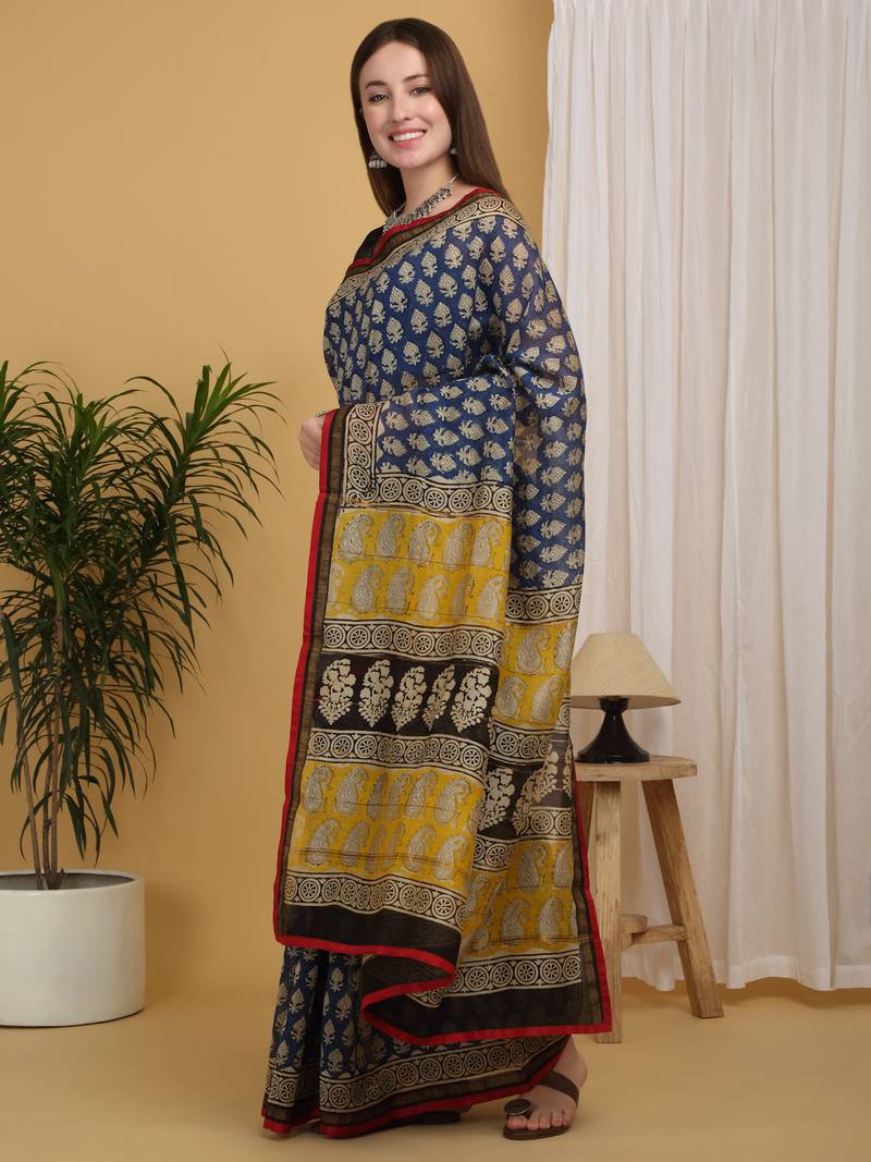 | Product Name | Blue Chanderi Cotton Silk Block Print Saree | |
