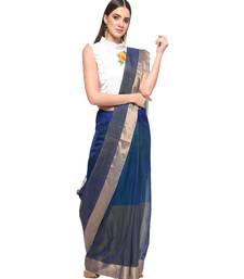 | Product Description | Fabric & Craft: Handwoven Pure Cotton Silk Blend Chanderi Saree Color & Design: Blue Shaded Saree With Elegant Gold Tissue Border And Gold Tissue Pallu Occasion: Ideal For Festive Wear, Weddings, Parties & Ethnic Occasions Blouse Piece: Matching Blouse Piece Included Along The Saree Length Length & Care: Total Length 6.75 Meters (Incl. Blouse) | Dry Clean Only |