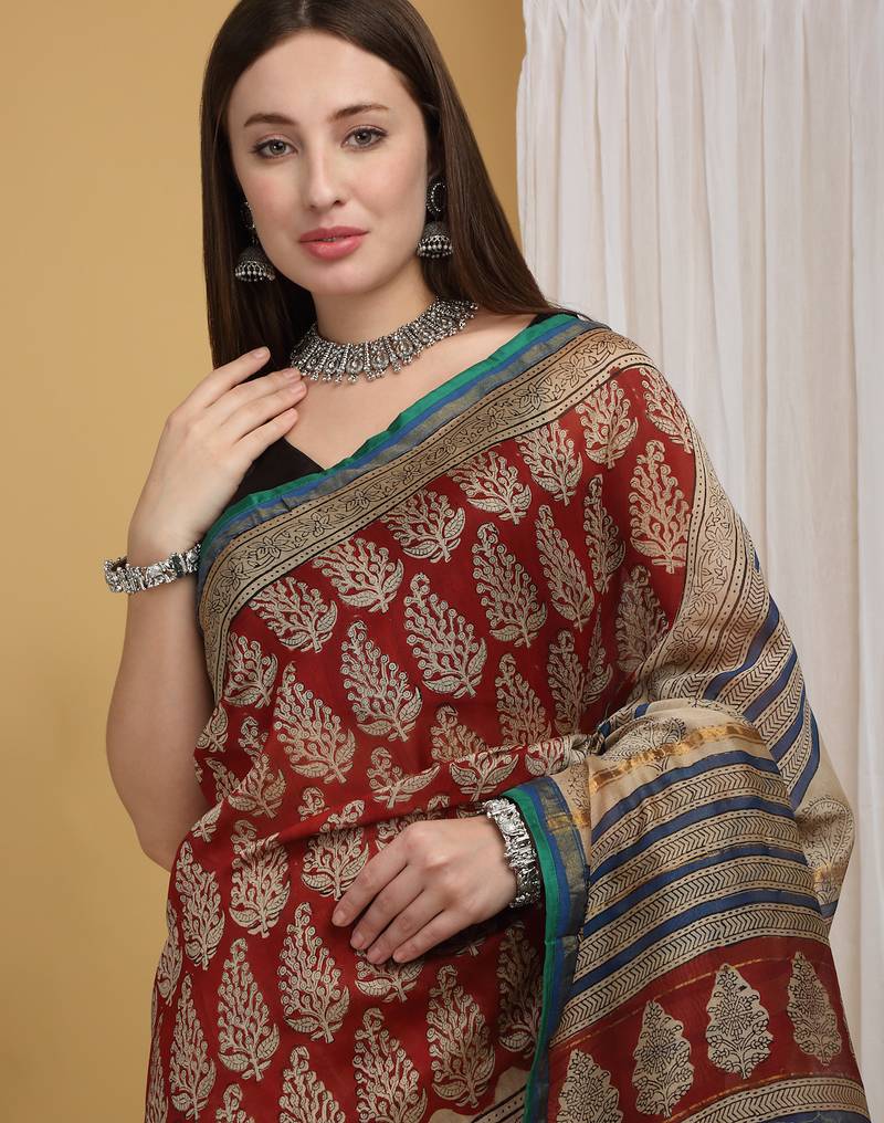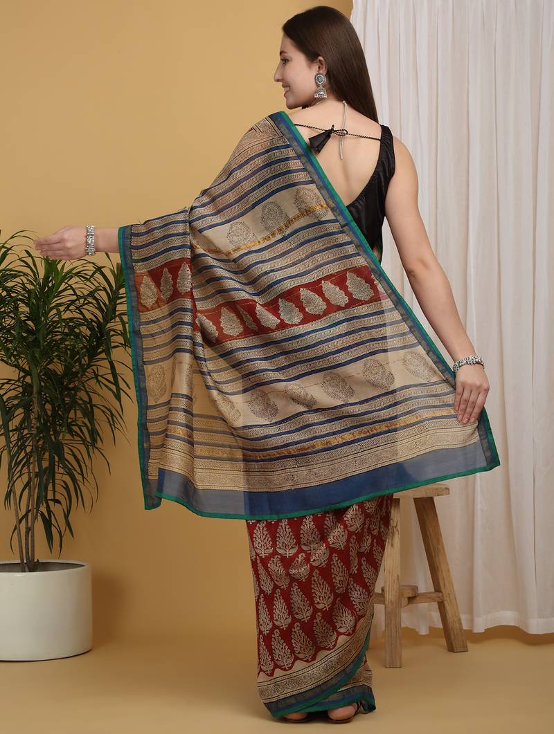 | Product Name | Maroon Chanderi Cotton Silk Block Print Saree | |