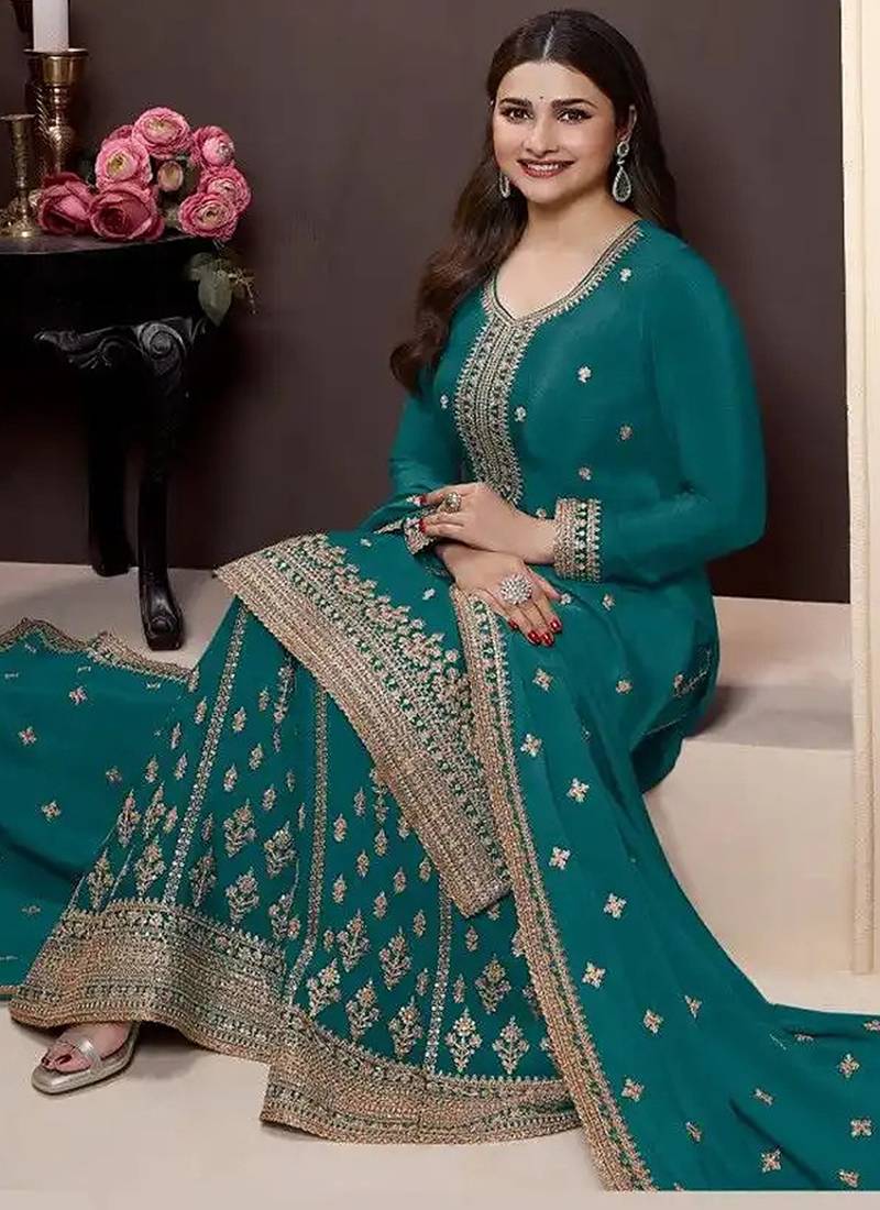 | Product Name | Teal Chinon Embroidered Salwar Suit | |