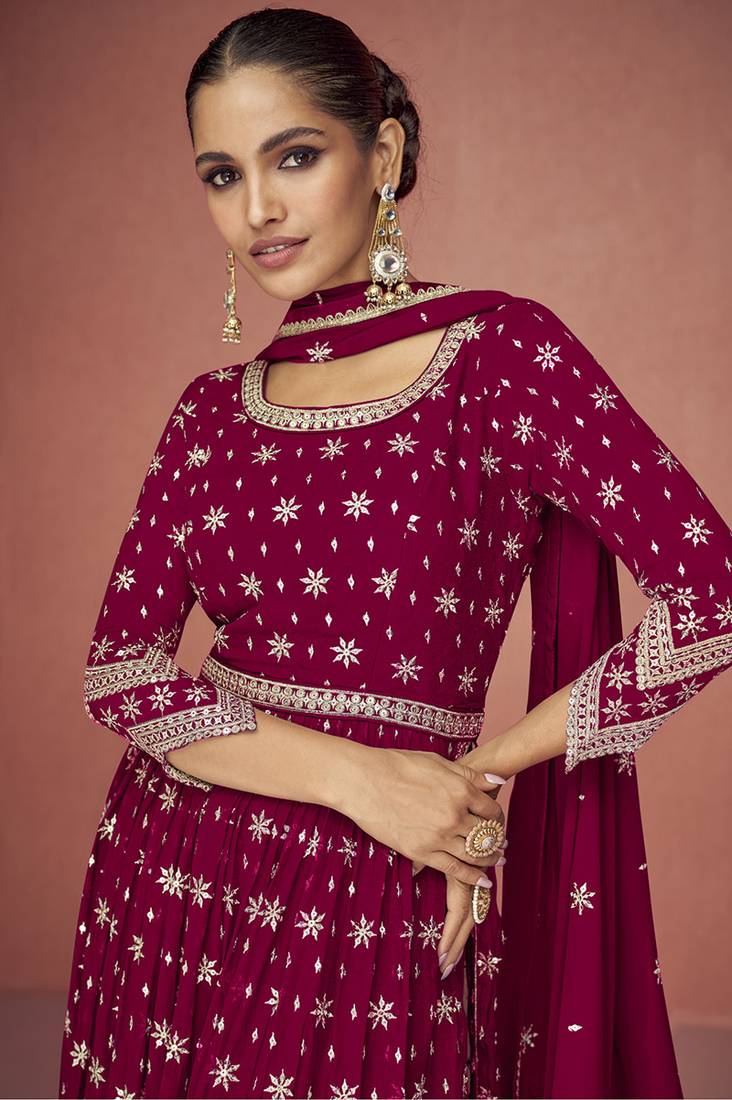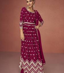 Dark magenta color embroidered festival salwar kameez semi stitched