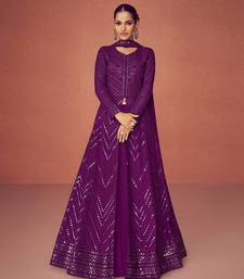 Dark purple embroiedred floor length salwar kameez semi stitched