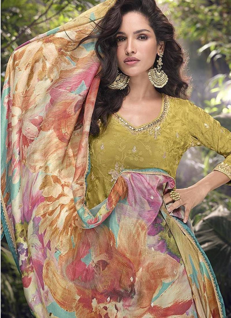 | Product Description | Make The Heads Flip Whenever You Costume Up In This Kind Of A Desirable Mustard Chinon Silk Salwar Suit. The Interesting Embroidered, Floral Patterns And Resham Work A Intensive Element Of This Dress. Comes With Matching Bottom And Dupatta. (Slight Variation In Color, Fabric & Work Is Possible. Model Images Are Only Representative.))Please Note That Accessories Are Only For Shooting Purposes |