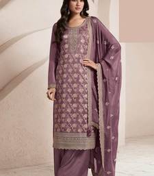 Lilac jacquard work silk blend dark trendy salwar kameez semi stitched