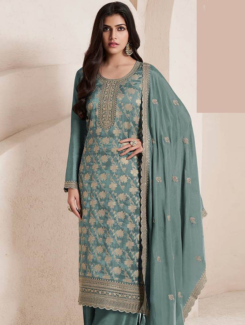 | Product Name | Teal Jacquard Work Silk Blend Light Trendy Salwar Kameez | |