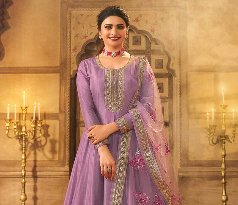 | Product Name | Lavender Embroidered Dola Silk Aanarakali Floor Length Suit | |