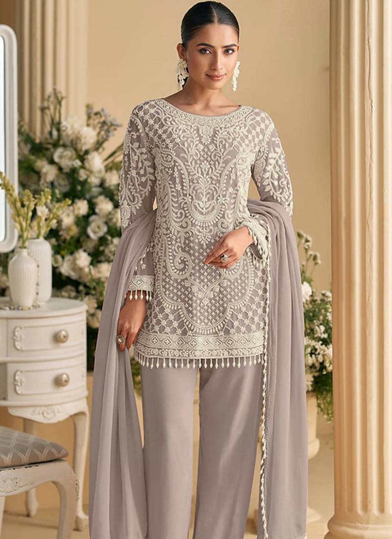 | Product Name | Light Grey Faux Georgette Beads Sequins Straight Pant Suit | |