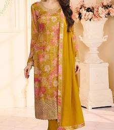 | Product Name | Mustard Chinon Silk Floral Printed And Embroidered Salwar Kameez | |